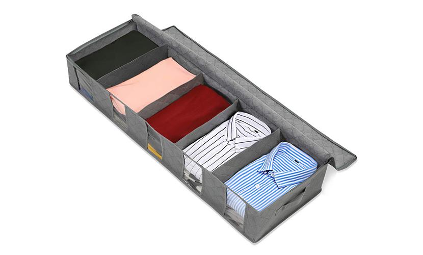 產(chǎn)品具有可折疊特性,閑置的時候可以存放到任何地方,節(jié)省空間。非常適合存放在衣柜,儲物架或是床下面。